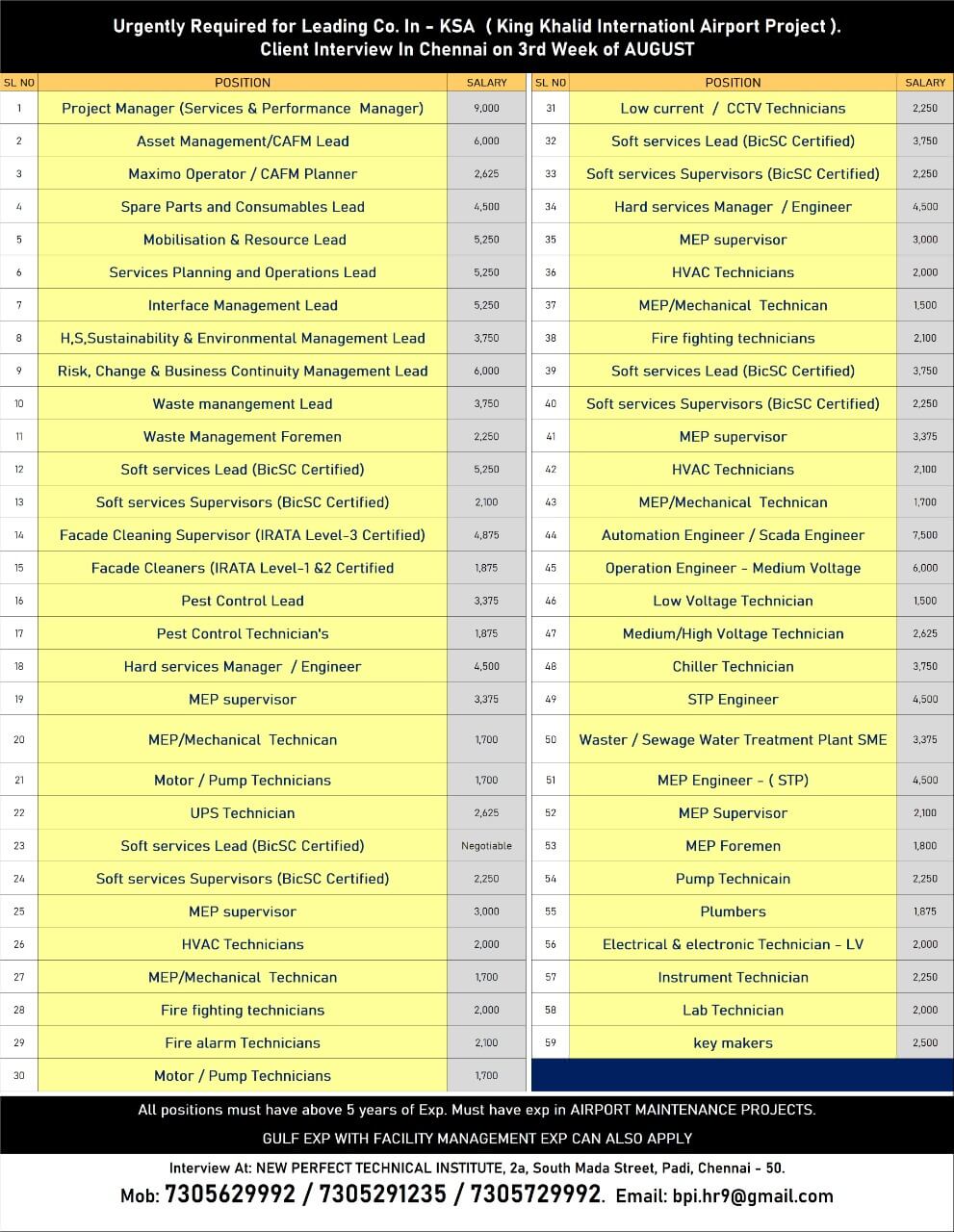 | MEP supervisor | 3375 SAR | |