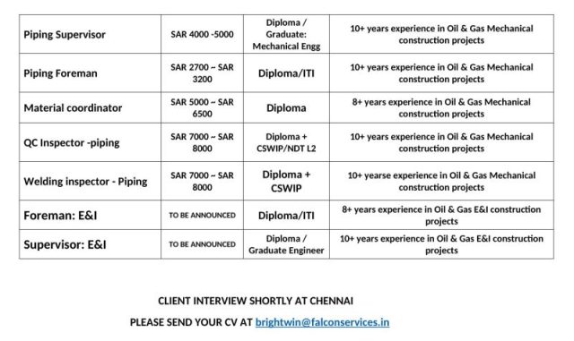 Experienced candidates in oil & gas mechanical / E & I construction projects required