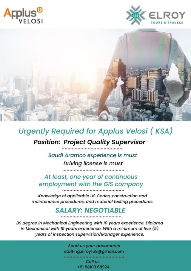 Candidates must have minimum 5 years experience in inspection/supervison/manager positions