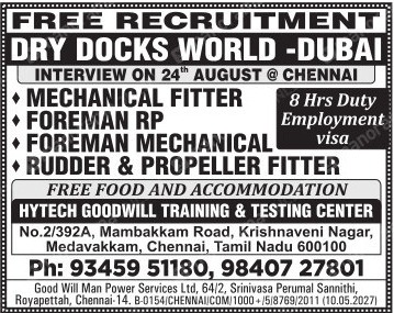Walk-in-interview on 24th August at Hytech goodwill training & testing center, no 2/392A, mambaam rd, krishnaveni nagar, chennai, Tamilnadu - 600100 Chennai