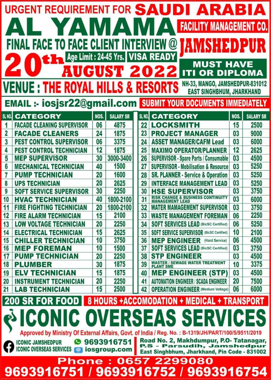 AL Yamama company jobs - Large recruitment to Saudi arabia