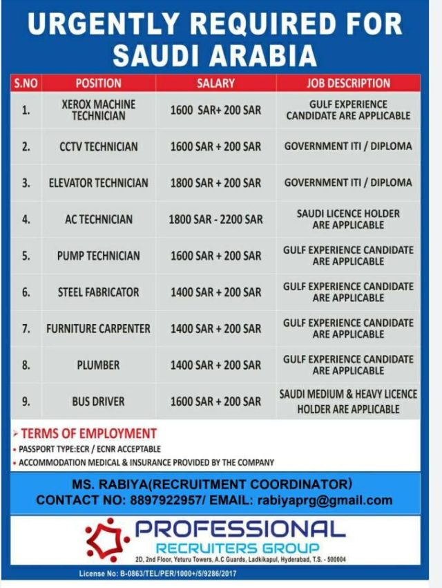 Urgently required for Saudi arabia