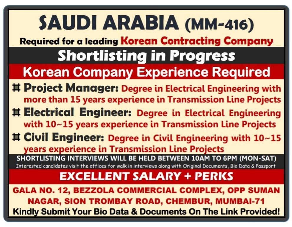 Wanted for Saudi arabia - Korean Contracting Company