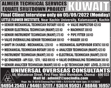 Almeer company Kuwait vacancy - Recruitment to shutdown project