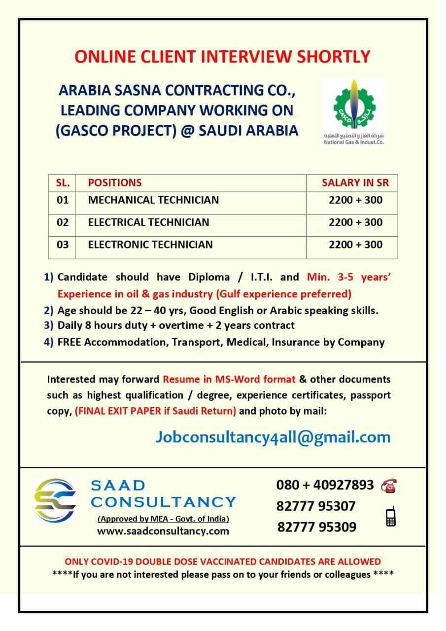 Arabian Sasna company jobs - Hiring for GASCO Project