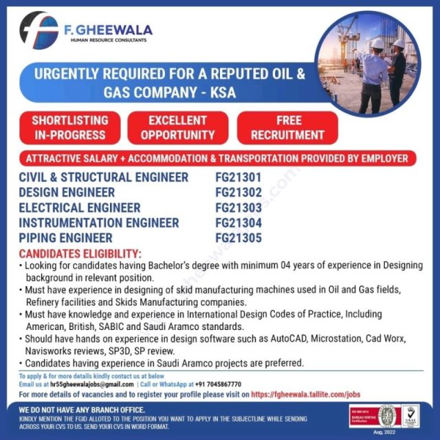 Free recruitment to Oil & Gas company in KSA