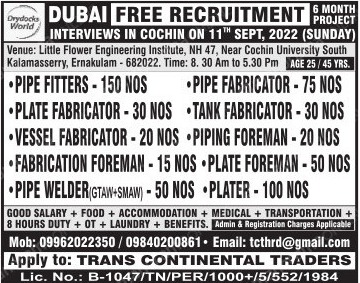 Free recruitment to Dubai - 6 Months Project