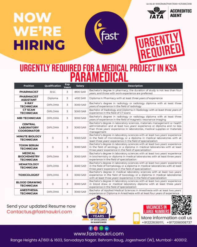Paramedic jobs in Saudi Arabia - Large recruitment