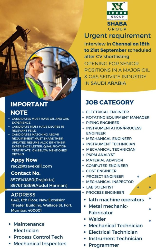 Recruitment to oil & gas service company in KSA