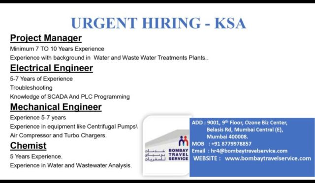 Urgent hiring for KSA