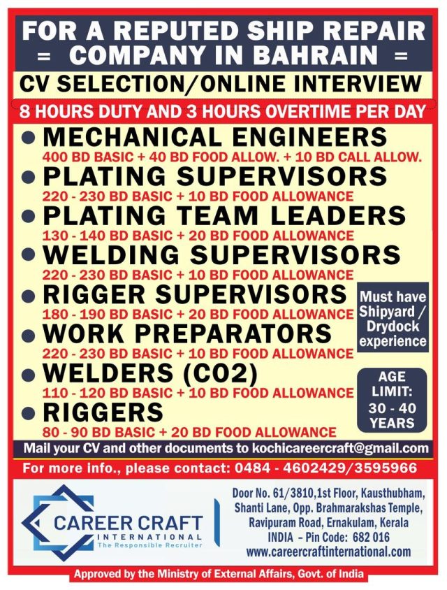 Hiring for Bahrain - Ship Repair Company
