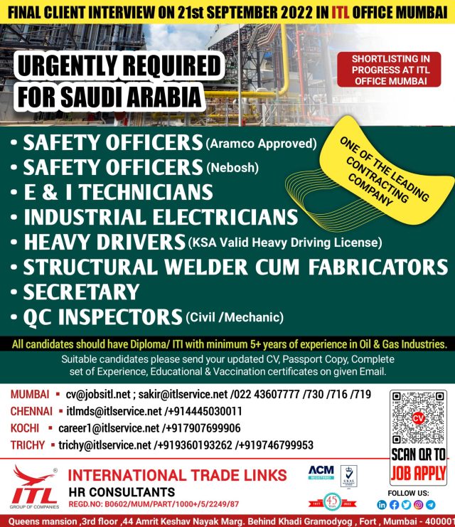 Walk-in-interview on 21st September 2022 at ITL office, Mumbai