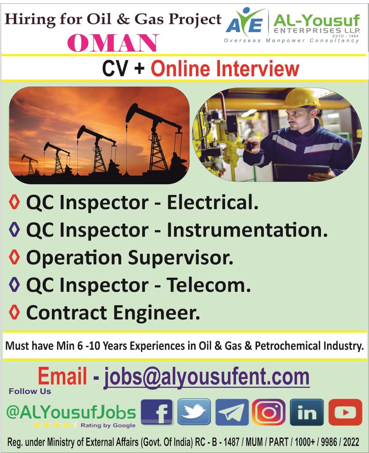 Candidates must have minimum 6 - 10 years experience in oil & gas petrochemical industry