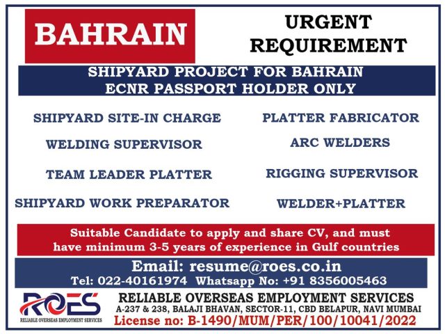 Bahrain shipyard job vacancies - Urgent requirement