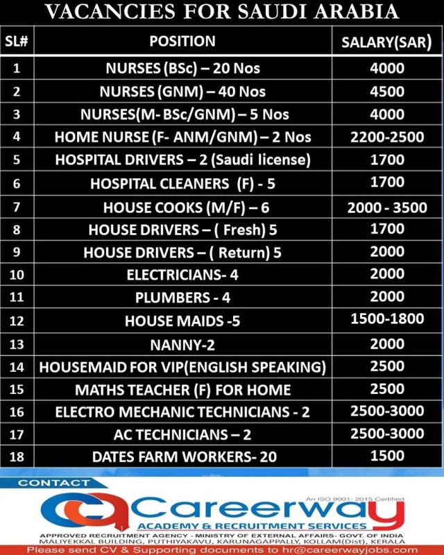 | Nurses GNM | 40 | 4500 SAR |