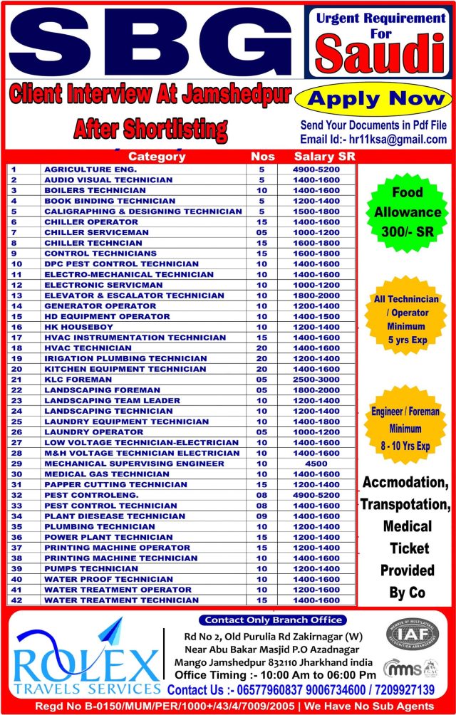| Elevator & escalator technician | 10 | 2000 SAR |