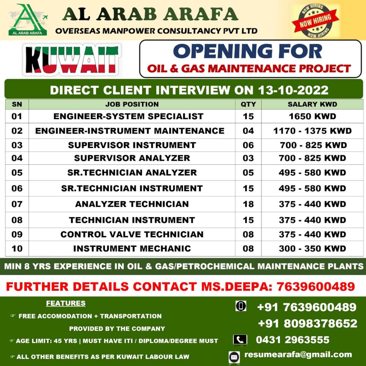 Engineer - instrument maintenance | 4 | 1375 KWD |