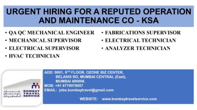 Disclaimer:- GCCWALKINS have no involvement in any recruitment process, This website just sharing job vacancies & interviews from various sources. Applicants are advised to research the bonafides of the prospective employer independently. We do NOT endorse any requests for money payments and strictly advice against sharing personal or bank related information. If you suspect any fraud or malpractice, email us at gccwalkins@gmail.com