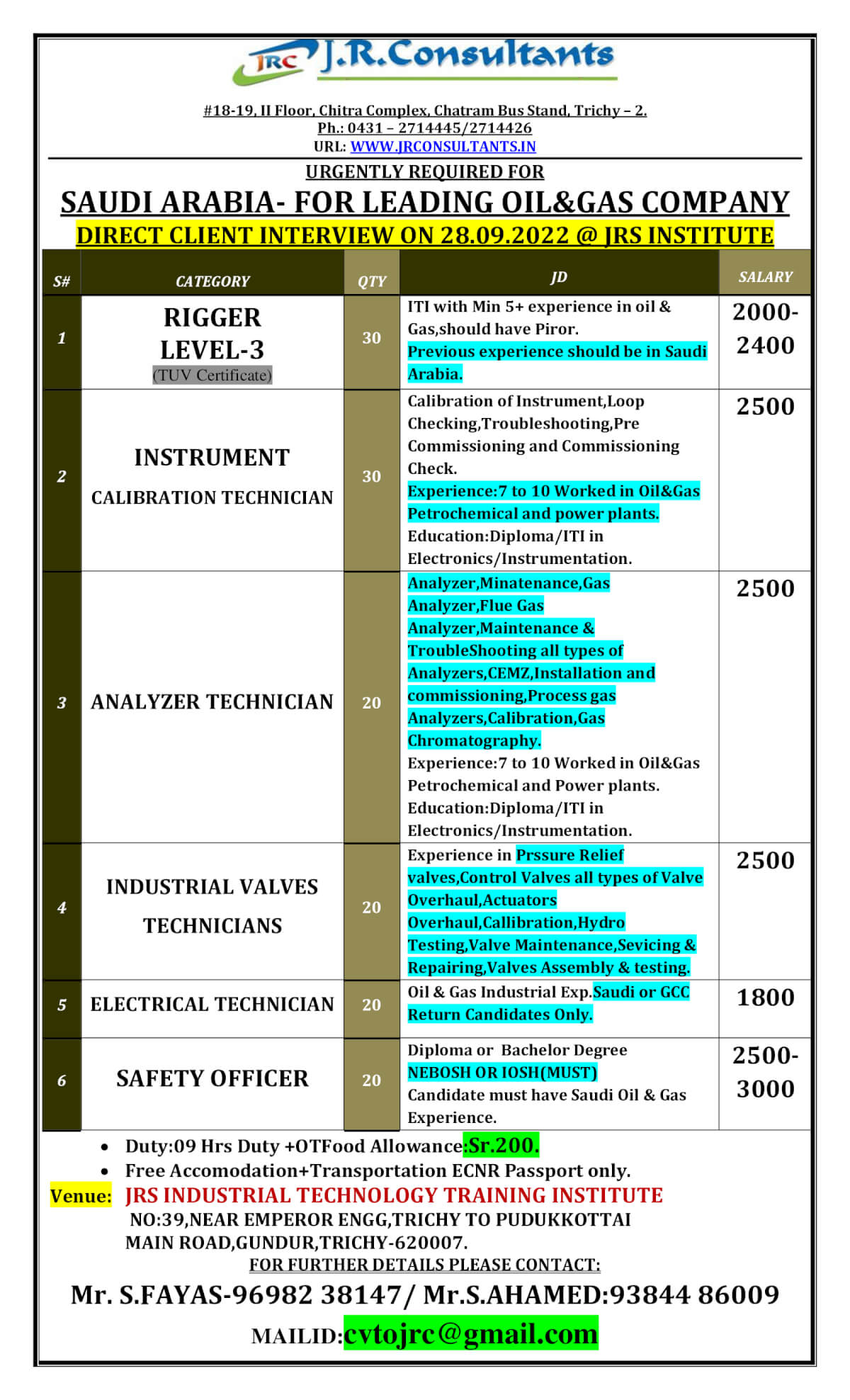 | Instrument calibration technicina | 30 | 2500 SAR |