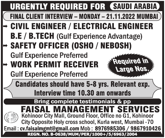 Disclaimer:- GCCWALKINS have no involvement in any recruitment process, This website just sharing job vacancies & interviews from various sources. Applicants are advised to research the bonafides of the prospective employer independently. We do NOT endorse any requests for money payments and strictly advice against sharing personal or bank related information. If you suspect any fraud or malpractice, email us at gccwalkins@gmail.com