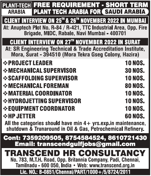 Minimum 4 + years experience in maintenance shutdown & turnaround in oil & gas, petrochemical refinery.