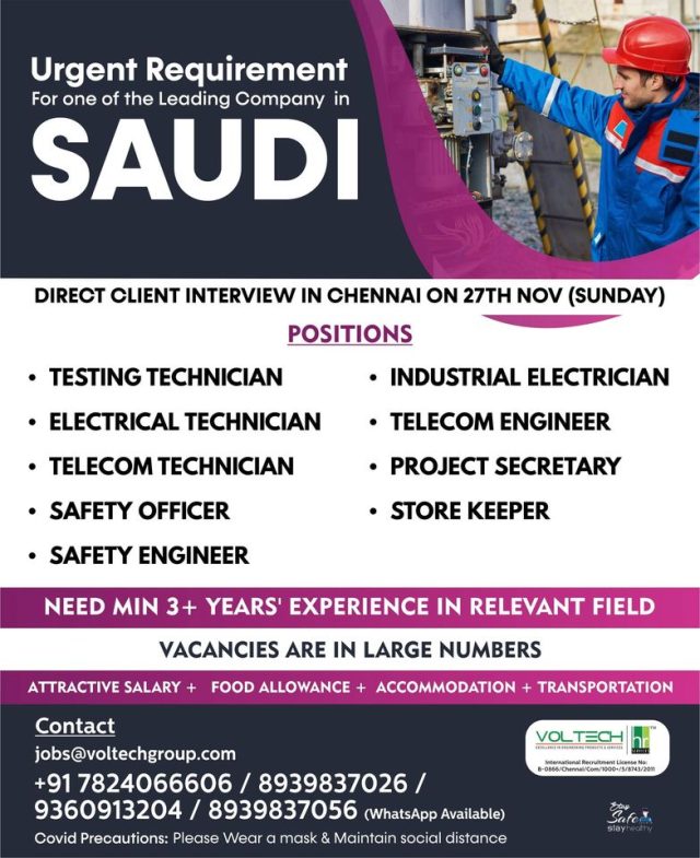 Urgent requirement for Saudi arabia