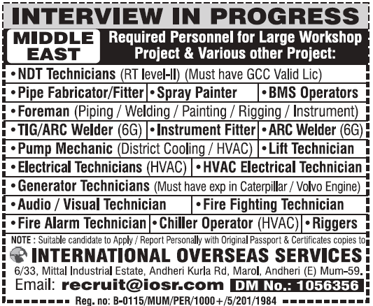 NDT technicians (RT level - II) gcc valid lic. | ||