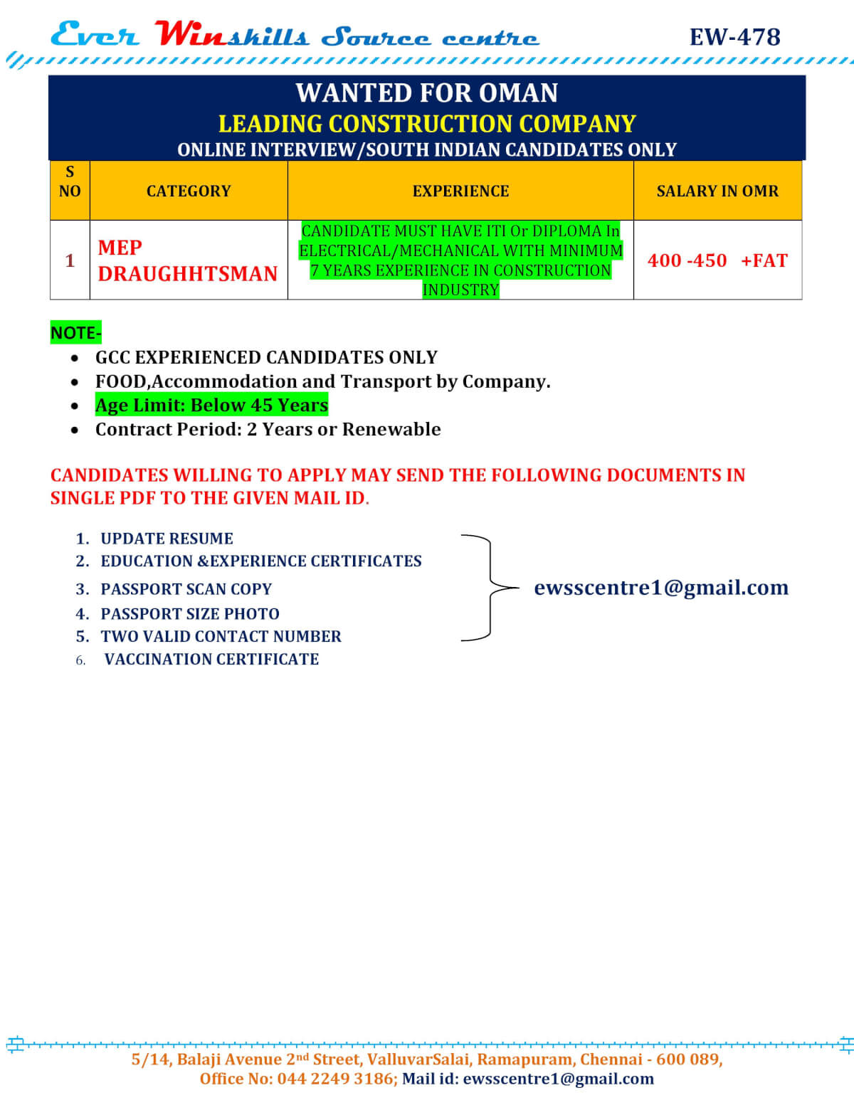| MEP draughtsman | 450 OMR |