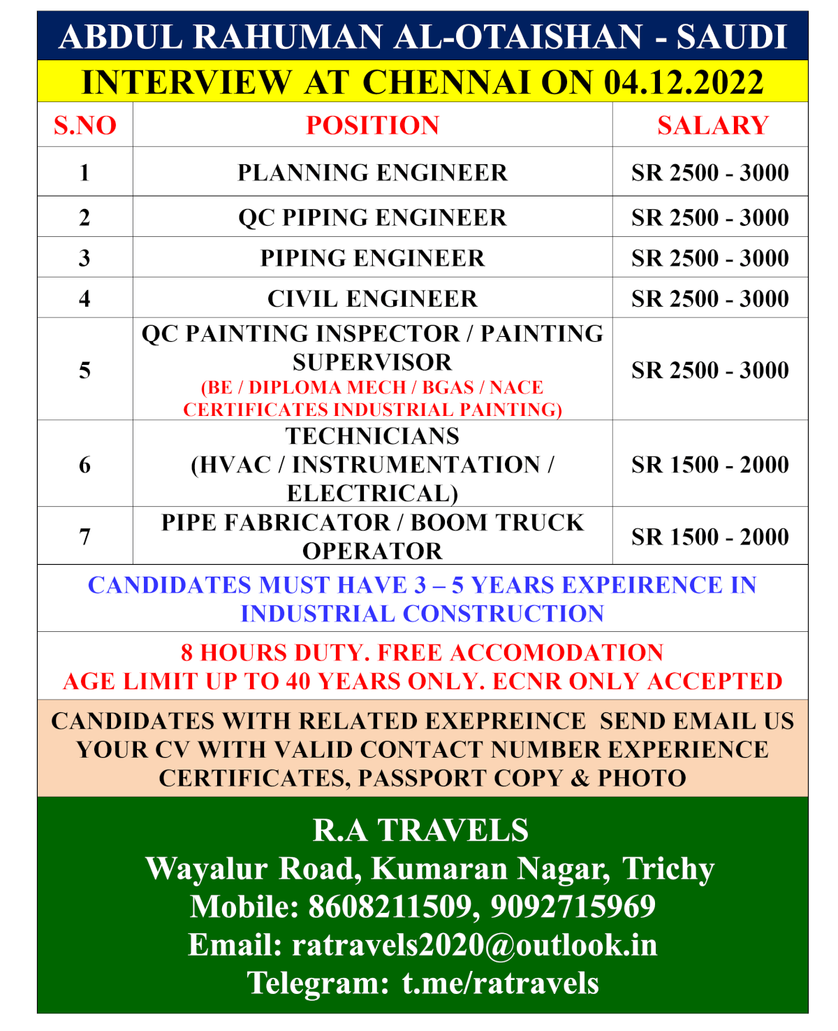 | Technicians - HVAC/instrumentation/electrical) | 2000 SAR | |
