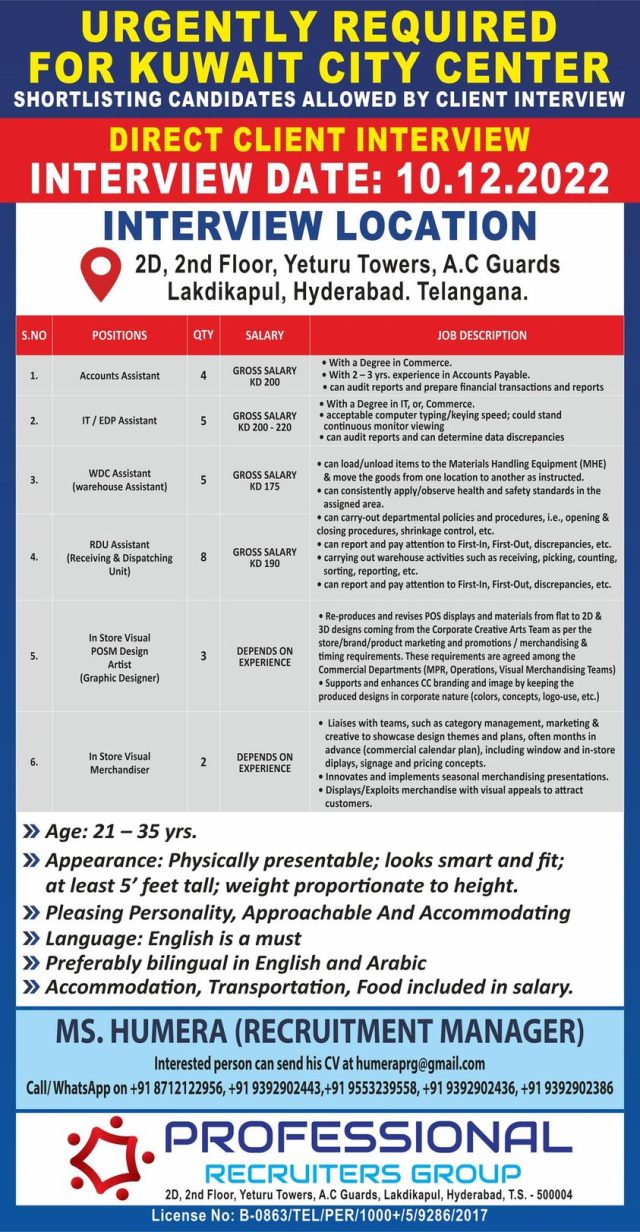 | WDC asst. (ware house asst.) | 5 | 175 KWD |