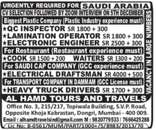 Urgently required for Saudi arabia
