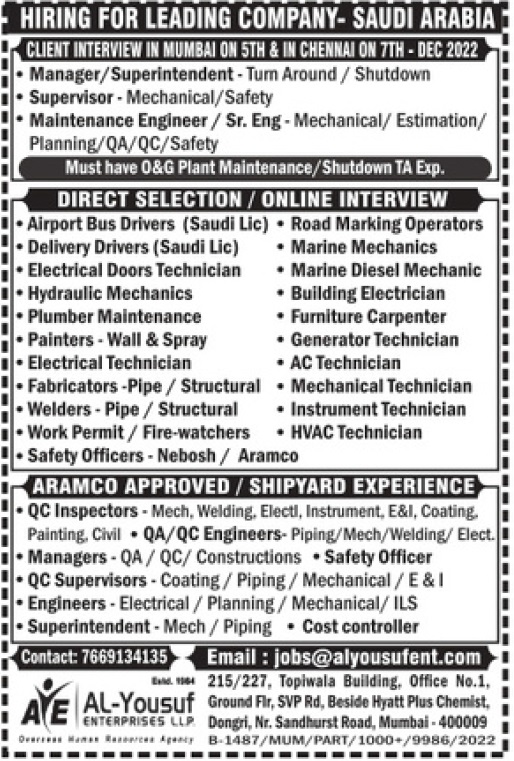 Saudi Arabia Job Vacancy 2022 - Large recruitment