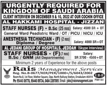 Al Hakkami hospital jizzan saudi arabia - Urgently required