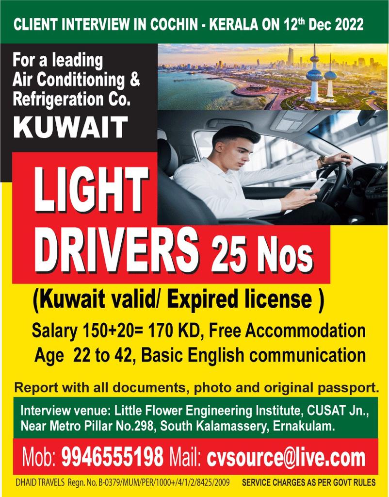 | Light drivers (Kuwait valid/expired license) | 25 | 170 KWD |