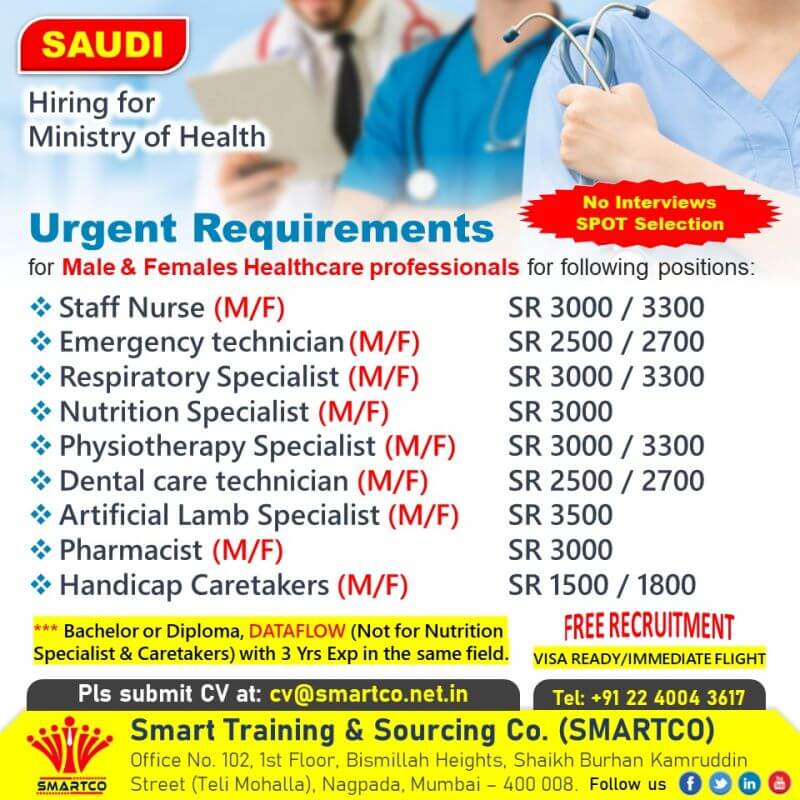 | Respiratory Specialist (M/F) | 3300 SAR | |