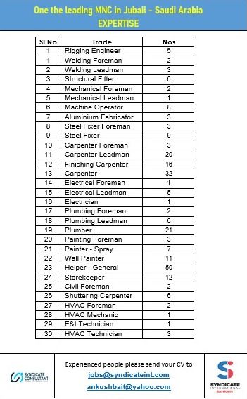 Email:jobs@syndicateint.com, ankushbait@yahoo.com