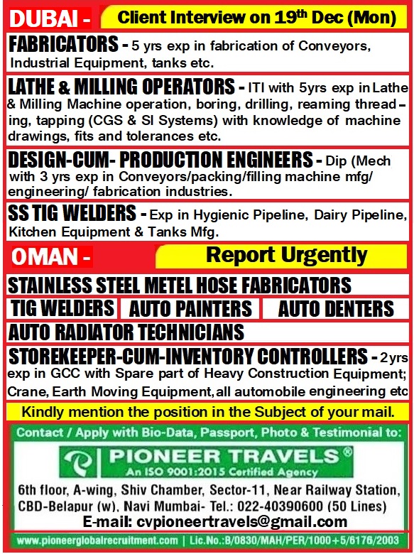 Job Location: UAE, Oman,