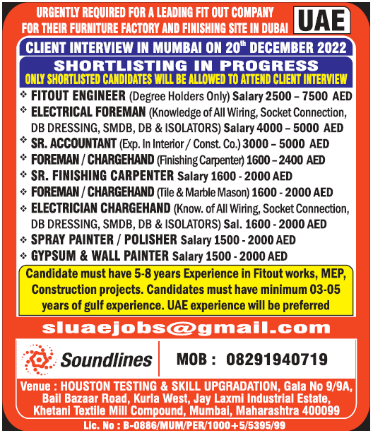 Urgent job vacancies in Dubai - Fit Out Company