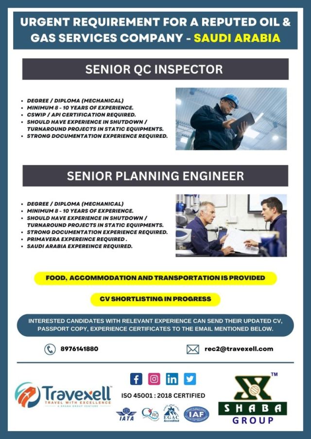 Disclaimer:- GCCWALKINS have no involvement in any recruitment process, This website just sharing job vacancies & interviews from various sources. Applicants are advised to research the bonafides of the prospective employer independently. We do NOT endorse any requests for money payments and strictly advice against sharing personal or bank related information. If you suspect any fraud or malpractice, email us at gccwalkins@gmail.com