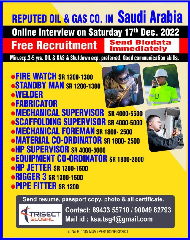 Disclaimer:- GCCWALKINS have no involvement in any recruitment process, This website just sharing job vacancies & interviews from various sources. Applicants are advised to research the bonafides of the prospective employer independently. We do NOT endorse any requests for money payments and strictly advice against sharing personal or bank related information. If you suspect any fraud or malpractice, email us at gccwalkins@gmail.com