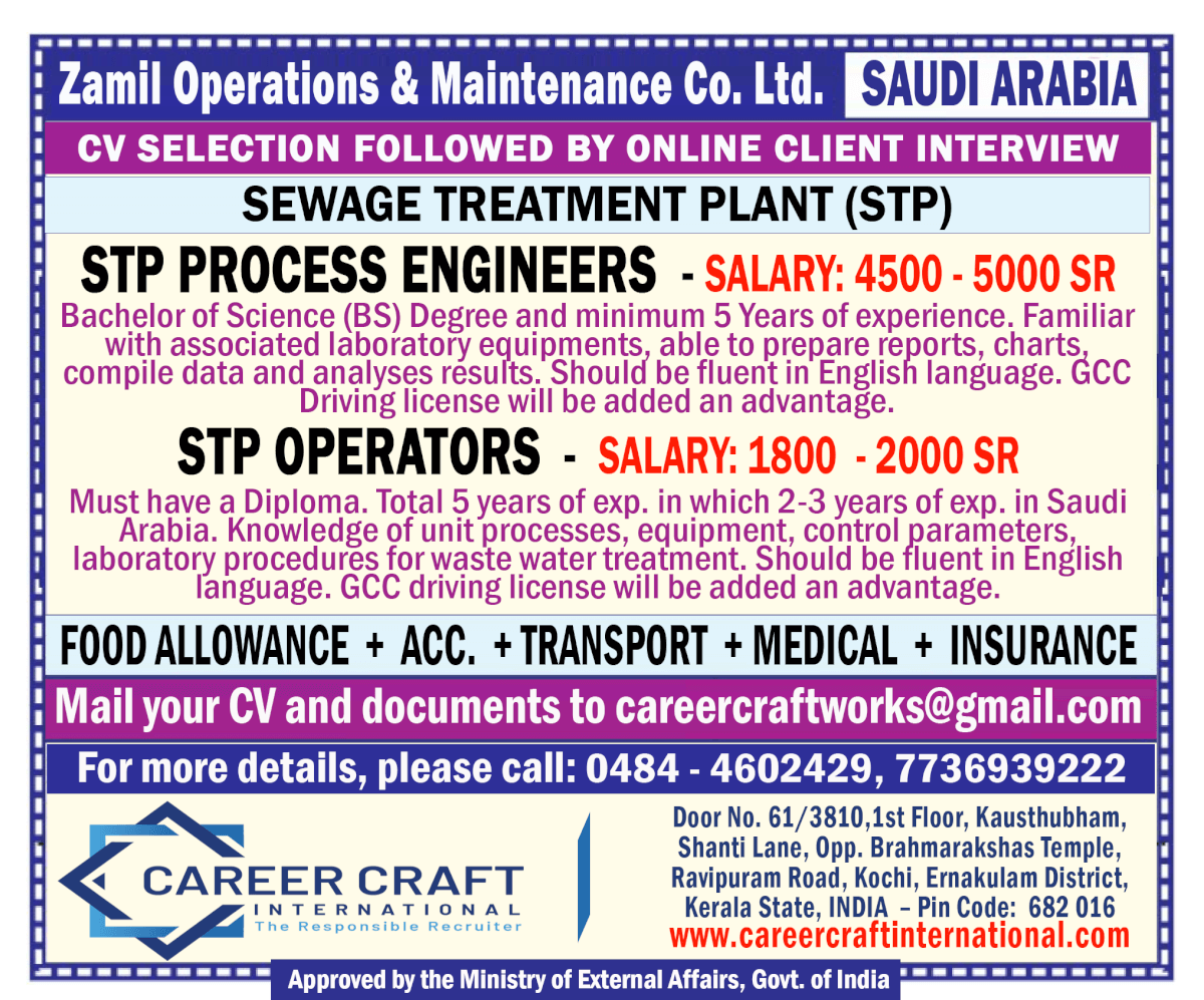 Wanted for Saudi arabia - Zamil Operations & Maintenance Company
