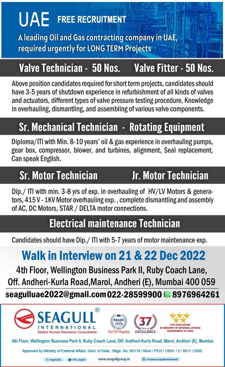 Disclaimer:- GCCWALKINS have no involvement in any recruitment process, This website just sharing job vacancies & interviews from various sources. Applicants are advised to research the bonafides of the prospective employer independently. We do NOT endorse any requests for money payments and strictly advice against sharing personal or bank related information. If you suspect any fraud or malpractice, email us at gccwalkins@gmail.com