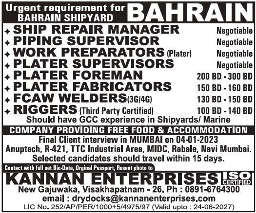 Bahrain shipyard job vacancies - Urgently required