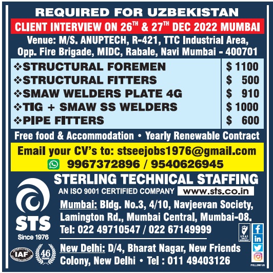 Walk-in-interview on 26th & 27th Dec. 2022 at Anup Tech Mumbai