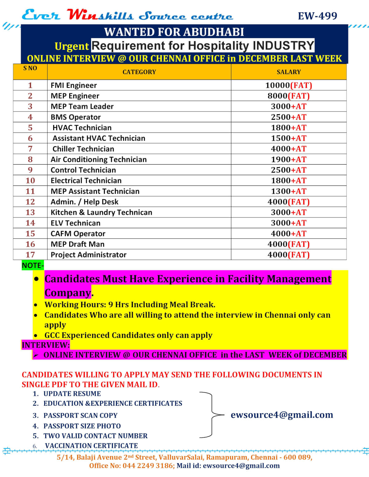 Candidates Must have Experience in Facility Management Company. GCC Experienced Candidates only can apply