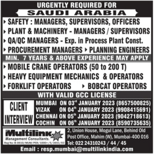 Urgently required for Saudi arabia