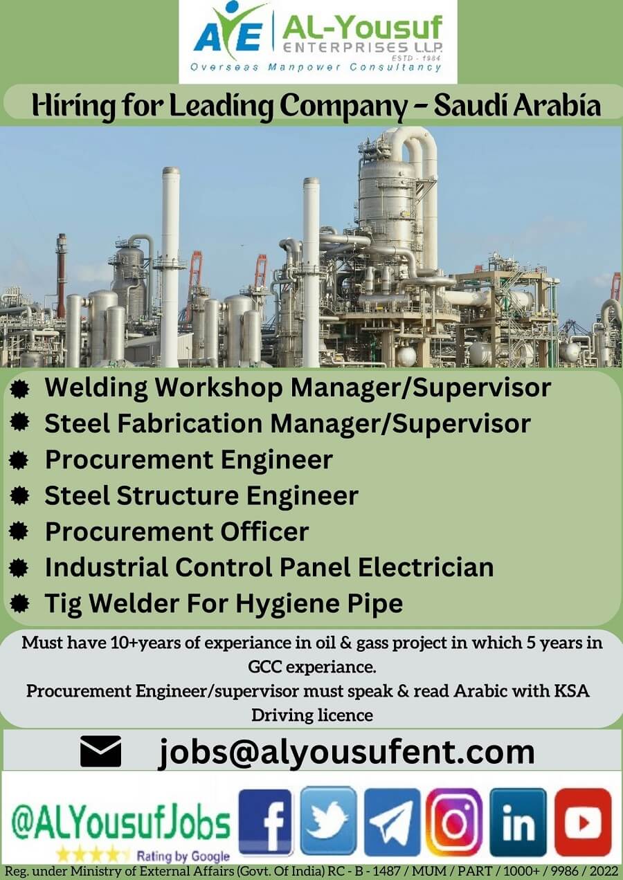 Hiring for leading company in Saudi arabia