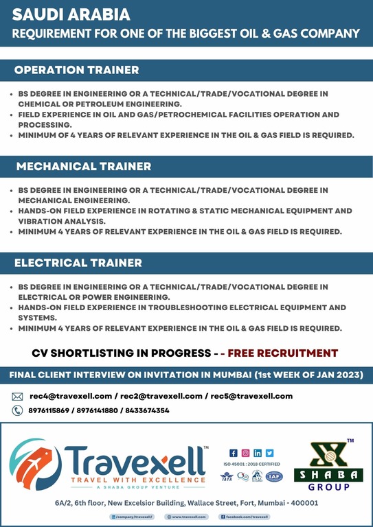 Disclaimer:- GCCWALKINS have no involvement in any recruitment process, This website just sharing job vacancies & interviews from various sources. Applicants are advised to research the bonafides of the prospective employer independently. We do NOT endorse any requests for money payments and strictly advice against sharing personal or bank related information. If you suspect any fraud or malpractice, email us at gccwalkins@gmail.com