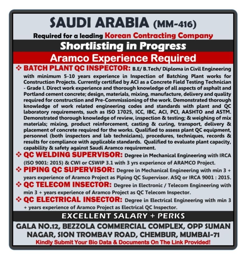 Wanted for Saudi arabia - Korean Contracting Company