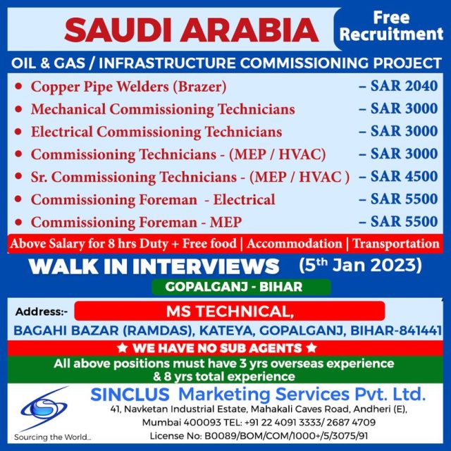 | Senior Commissioning technicians (MEP/HVAC) | 4500 SAR | |